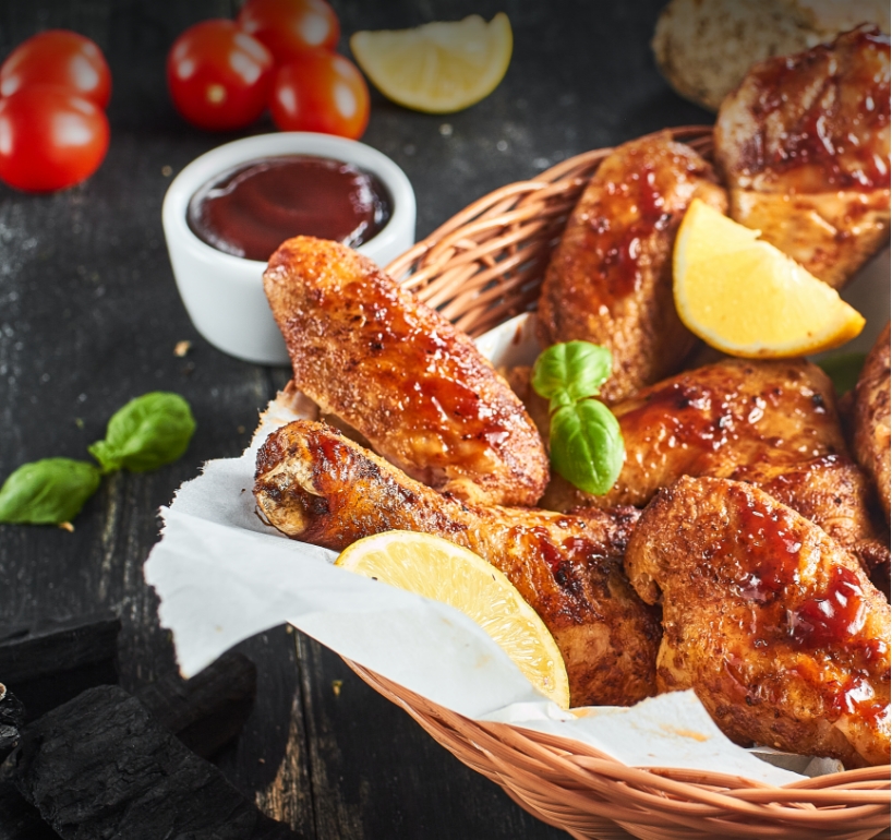 Diese Chicken Wings sind extra groß. Ein Genuss durch eine edle würzige, tomatig-rauchige BBQ- Marinade.